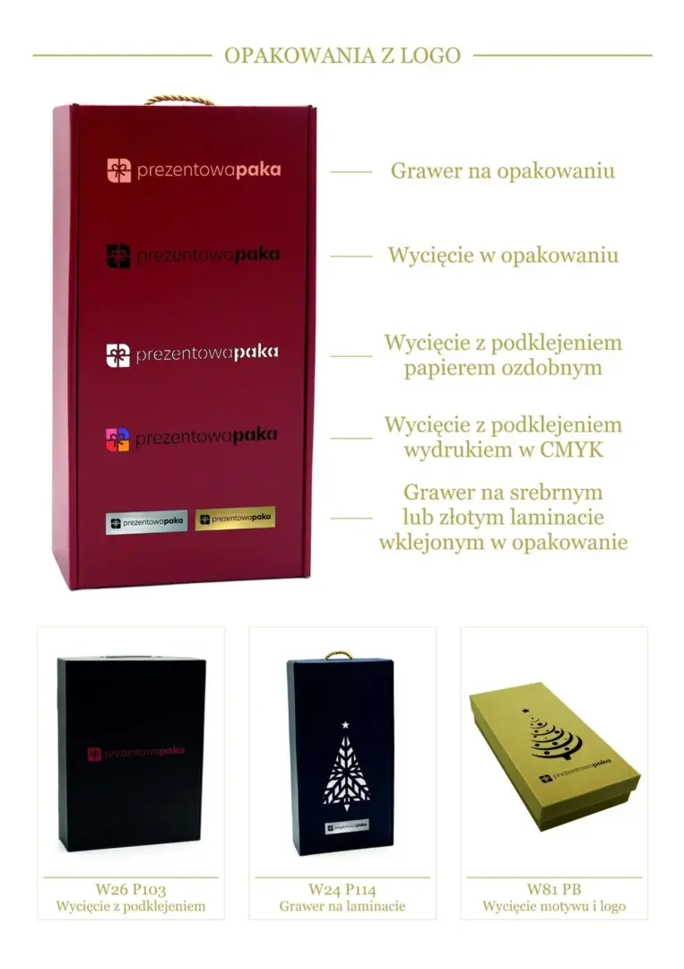 Personalizowane opakowania to nie tylko elegancka forma podarowania prezentu, ale także świetna reklama Twojej firmy. Dzięki nim każdy upominek zyskuje wyjątkowy charakter i na długo zostaje w pamięci obdarowanego. Oferujemy szeroki wybór pudełek prezentowych, które możesz dowolnie spersonalizować, np. poprzez umieszczenie logo firmy, napisu lub innego elementu graficznego. Dopasuj opakowanie idealnie do swoich potrzeb – stworzymy projekt zgodny z Twoją wizją i charakterem marki. W naszej ofercie znajdziesz m.in.: 📦 boxy z rączką – wygodne i eleganckie, 👀 boxy z okienkiem – pozwalające wyeksponować zawartość, 🎁 boxy personalizowane – w pełni dopasowane do Twoich oczekiwań, 🌈 pudełka w różnych kolorach i fakturach, 🎀 dodatki: kolorowe wypełniacze, wstążki i różnorodne akcenty dekoracyjne, 👩💼👶 wzory opakowań dopasowane do różnych okazji – dla dorosłych, biznesowe i dziecięce. Każde opakowanie możemy przygotować w indywidualnej wersji, tak aby idealnie podkreślało charakter Twojego prezentu. Zapraszamy do kontaktu – razem stworzymy opakowanie, które wyróżni Twoją markę!