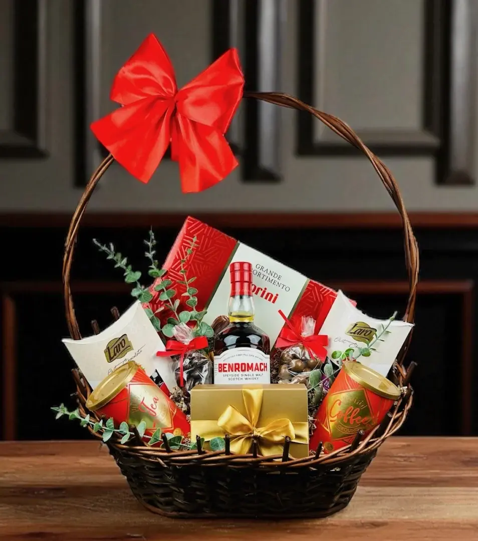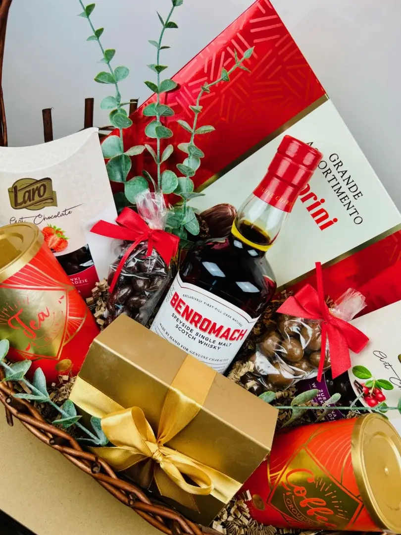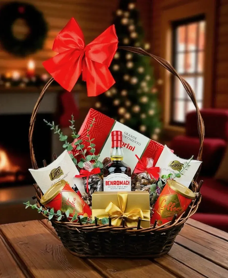 - Kosz gotowy do wręczenia, zapakowany w celofan – prezent nie wymaga dodatkowego przygotowania.