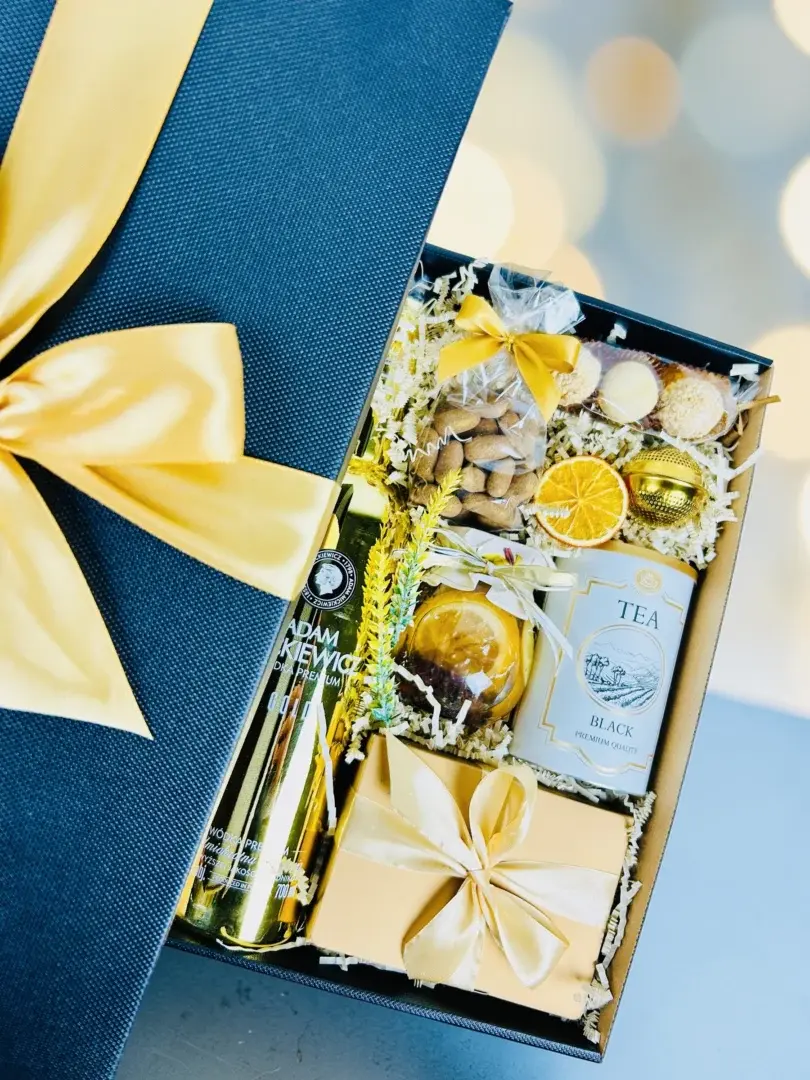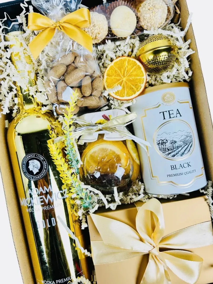 Jeśli szukasz prezentu, który doda codzienności nutę luksusu, nasz kosz upominkowy Złoty Akcent idealnie sprawdzi się w roli wyjątkowego upominku. Starannie dobrana kolekcja wyselekcjonowanych przysmaków i aromatycznych napojów to propozycja dla osób ceniących niebanalne doznania. Każdy element został wybrany, by zapewnić chwile pełne relaksu i radości. Przemyślana kompozycja i eleganckie opakowanie podkreślają niepowtarzalny charakter zestawu, czyniąc go doskonałym wyborem na każdą okazję. To idealny wybór zarówno na specjalne momenty, jak i codzienne świętowanie drobnych radości.